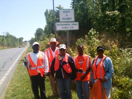 Working with fellow members of the Waxhaw-Mineral Springs Optimist Club during one of the club's Highway 75 cleanup days on April 14, 2012. | |