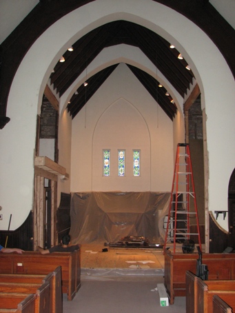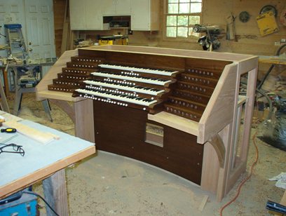 Woodwork, structure, and four manual console for a 76-stop pipe organ installed in Plainfield, New Jersey, begun in July 2002 and completed in June 2005
