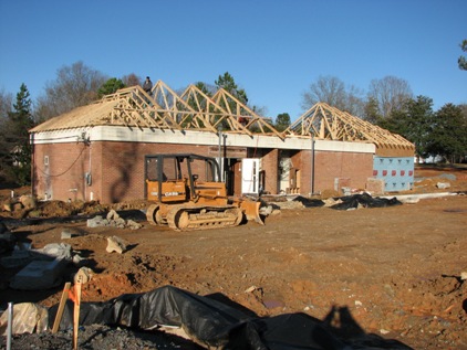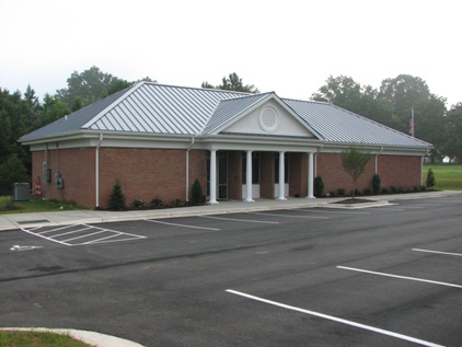 We have completed work on the first of the two buildings, the 2500 square foot 1960's-era former library building (shown "pre-renovation" on the right) located on Potter Road a block from Highway 75. This building was in excellent structural condition, and was a bargain for taxpayers at a purchase price of $100,000 including 1.05 acres of land. Construction of your new town hall began on October 20, 2008, and was completed in early May 2009. Pease Associates of Charlotte was responsible for design work, and Book Construction of Union County was the general contractor. Total construction cost, including the addition of 600 square feet, was approximately $482,000; architectural work and preconstruction expenses amounted to approximately $48,000 more. |